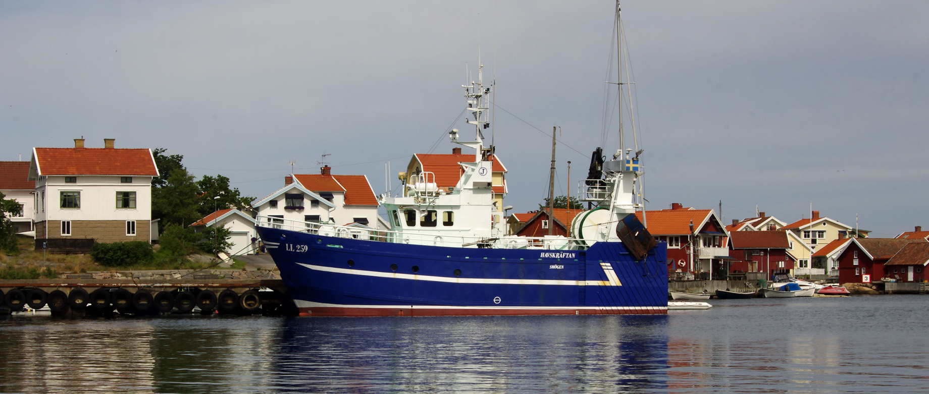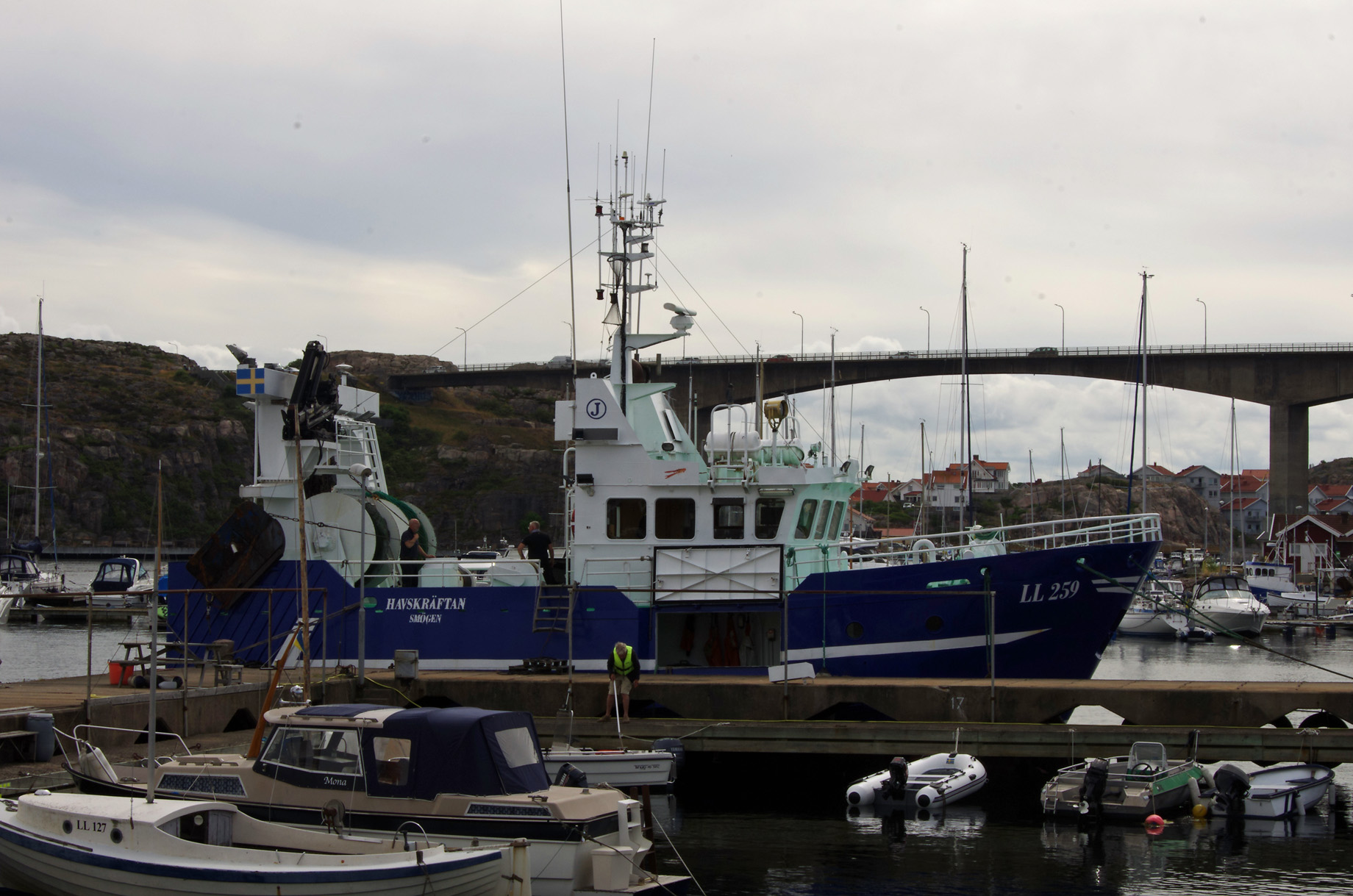 Vid södra brofästets västra kant finner du LL44 MARIE & Smögens Fiske & Skärgårdsturer